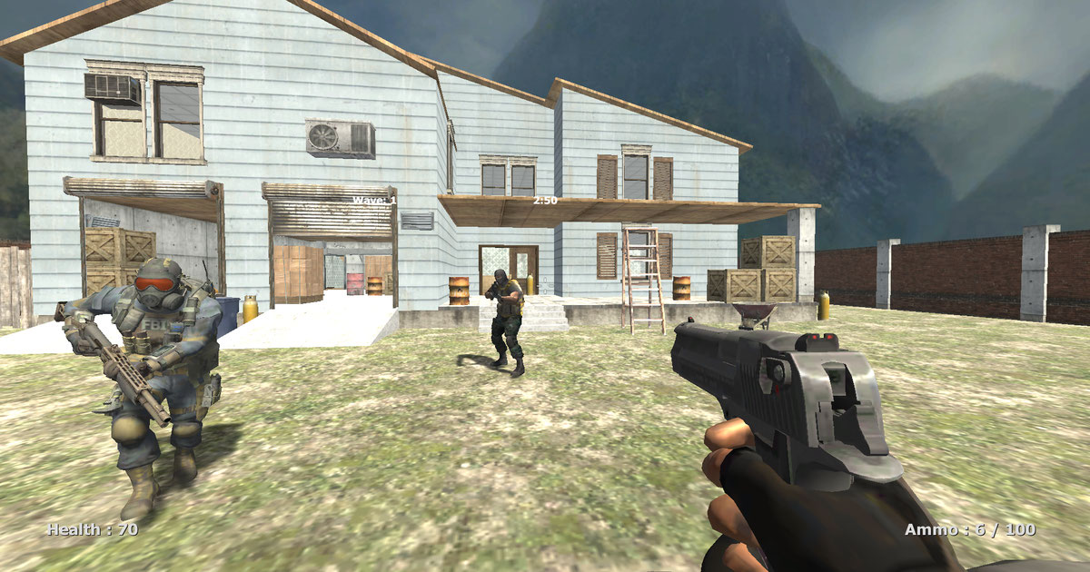 You are special forces soldier and your mission is to shoot incoming enemy forces and try to survive each wave of enemies in order to unlock more powerful weapons.
