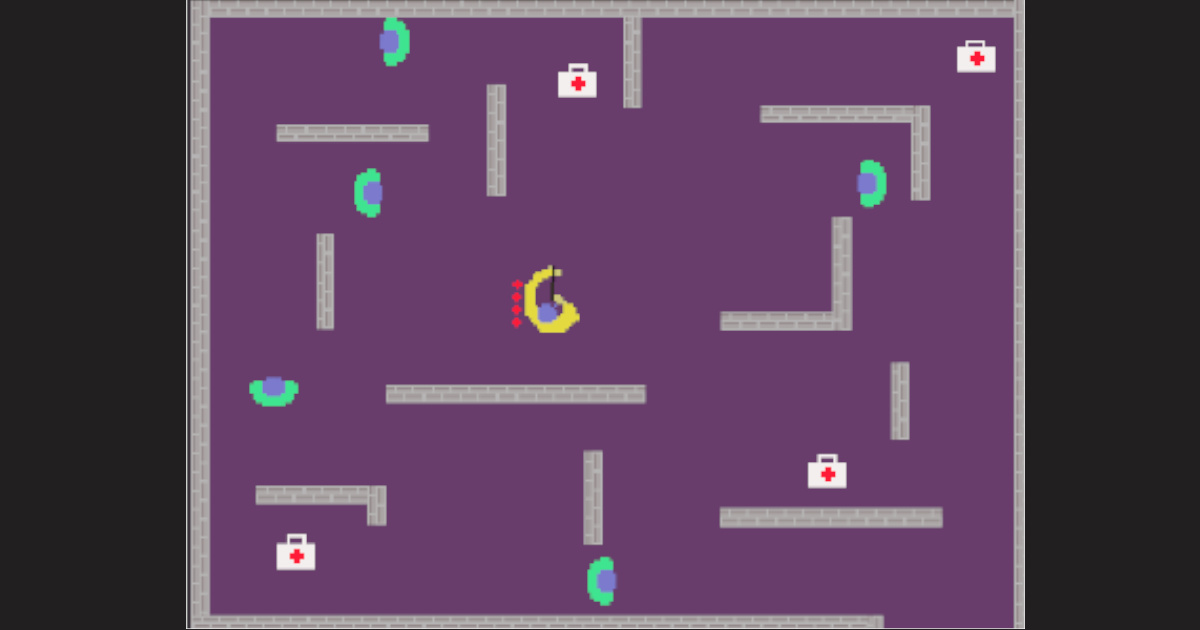 You are vengeed and you must find the antidote, which has some enemy and you must survive until you find it. The medicine cabinets will make you able to extend your life time a little but hurry up because your life goes down continuously.